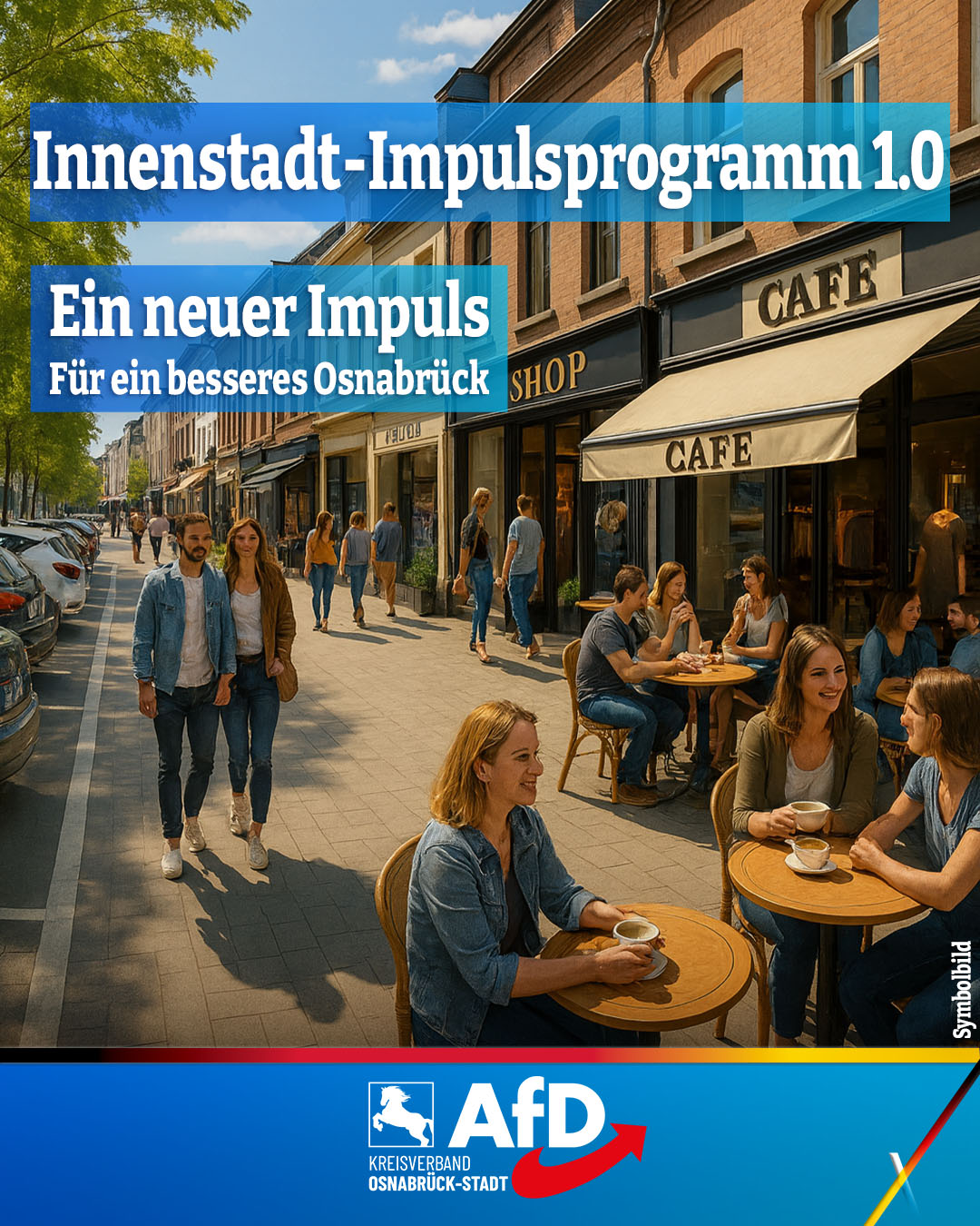 Der AfD-Stadtrat Alexander Garder kündigt an, in der kommenden Ratssitzung ein umfassendes Innenstadt-Impulsprogramm 1.0 vorzulegen. Ziel ist es, die Osnabrücker Innenstadt unter der Woche wieder lebendig, besser erreichbar und einladender zu machen. „Ich möchte, dass sich Osnabrück wieder als Gastgeberin für Bürgerinnen, Bürger und Gäste versteht“, so Garder.