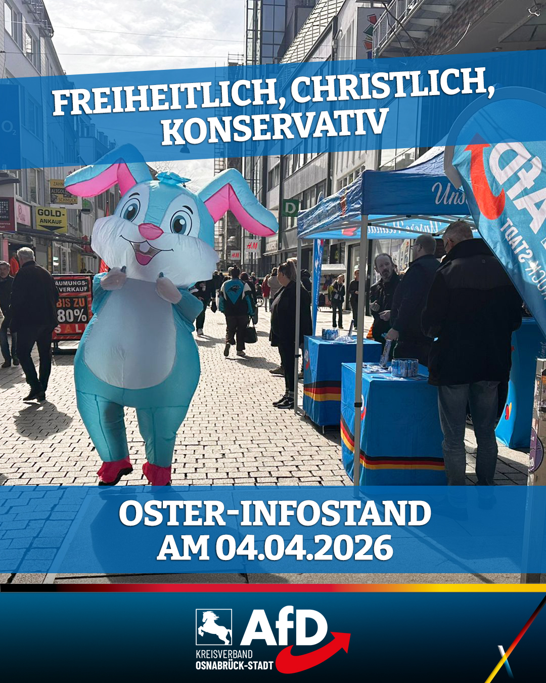 Am Samstag, den 4. April 2026, haben wir von 11 bis 16 Uhr erstmals einen Infostand im Herzen der Osnabrücker Innenstadt aufgebaut. Angesichts der bevorstehenden Osterfeiertage lag der Fokus diesmal besonders auf den Kindern.